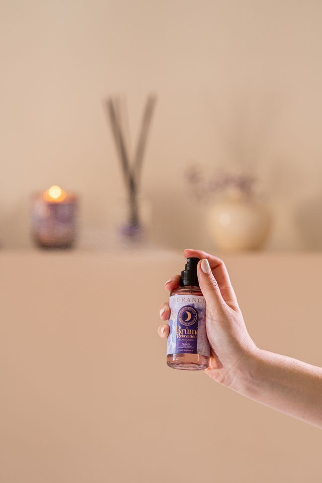 Plongez dans une ambiance apaisée avec la Brume d’oreiller Relaxante de Durance. Spécialement conçue pour parfumer délicatement vos draps et oreillers, elle accompagne votre rituel du soir pour favoriser la détente et un sommeil serein.