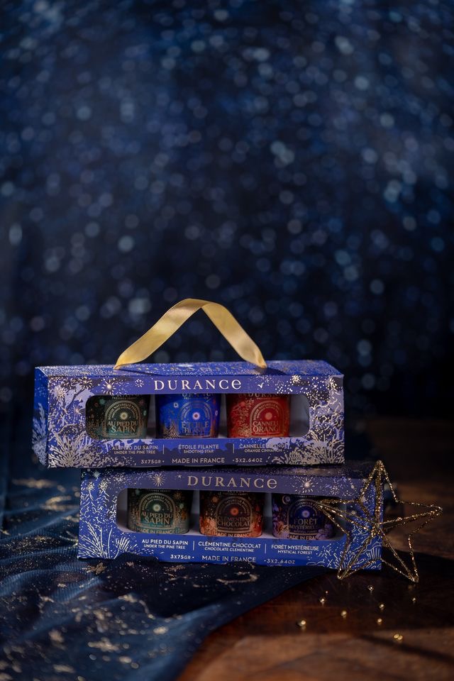 COFFRETS Bougies 3 x 75G/ Sapin- Clémentine Chocolat -Forêt Merveilleuse